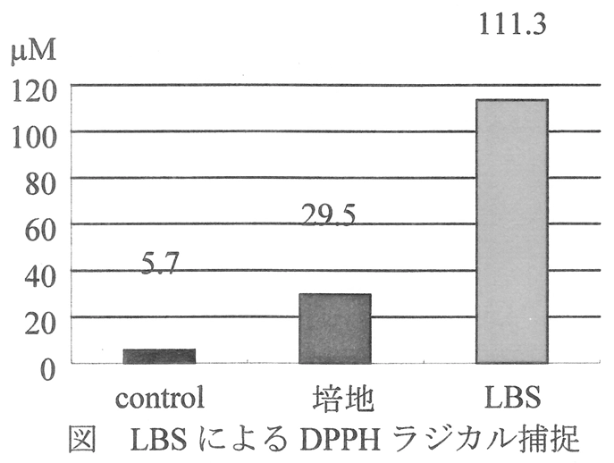 培地と比較して LBS では 3.7 倍のラジカル捕捉活性が見られた。